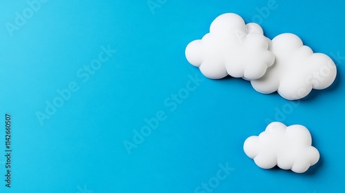 Clouds on a Blue Sky: Minimalistic and serene, three fluffy clouds float effortlessly against a vibrant blue backdrop, creating a sense of tranquility and open space.