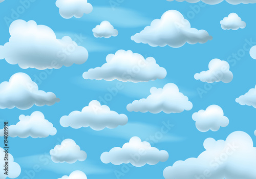 Clouds on blue sky. Seamless pattern. Vector endless background