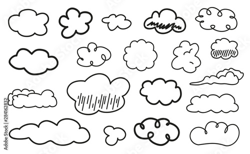 Clouds on isolation background. Doodles on white. Black and white illustration