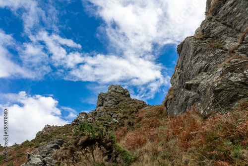 clouds over the mountain, cliff, rocks, sunny, mountain