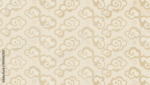 Cloudy pattern with swirling cloud shapes and small circles on a light beige textured background design element