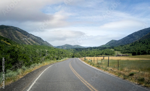 Cloudy sky with the road on a warm summer day in the Uinta National Forest in Utah