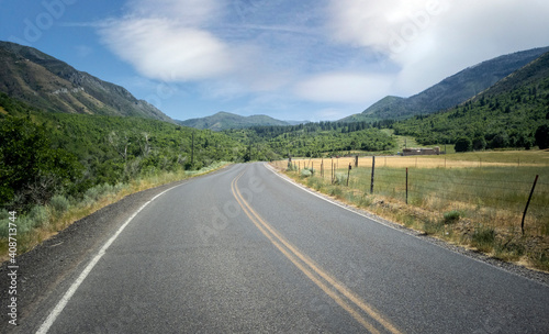 Cloudy sky with the road on a warm summer day in the Uinta National Forest in Utah