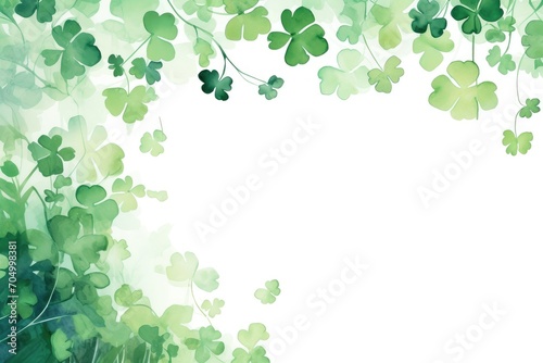 Clover leaves, setting the tone for St. Patrick's festivities. Copy space with text. Generative AI
