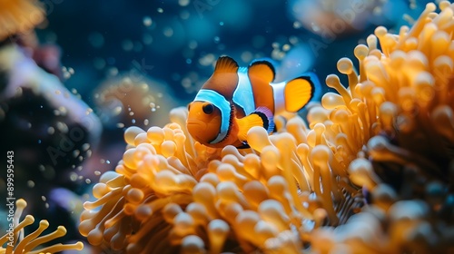 Clownfish Swimming Among Vibrant Sea Anemones in Crystal Clear Marine Environment