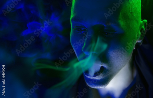 Club Party – Nightlife. Handsome Sexy Young Stylish Man Smokin