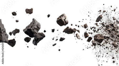 Cluster of Asteroids Floating in Space isolated on transparent white background, clipping path