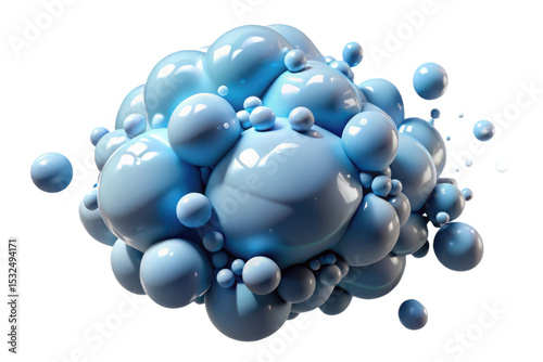 Cluster of blue spheres isolated on transparent background. use cases: design, science, technology.