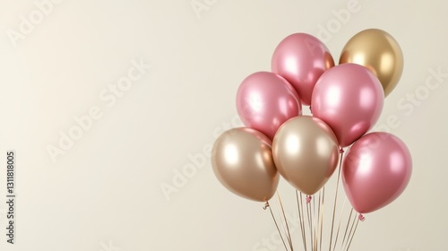 Cluster of Metallic Pink and Gold Balloons Against Neutral Background