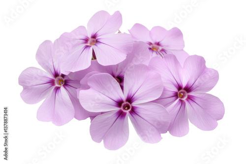 Cluster of vibrant lilac phlox flowers isolated on black, cut out