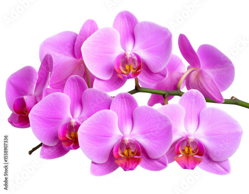 Cluster of Vibrant Magenta Orchid Blooms with Green Stem, isolated on transparent background PNG