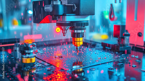 CNC Equipment Cutting Metal Sheet in High-Tech Workshop Environment