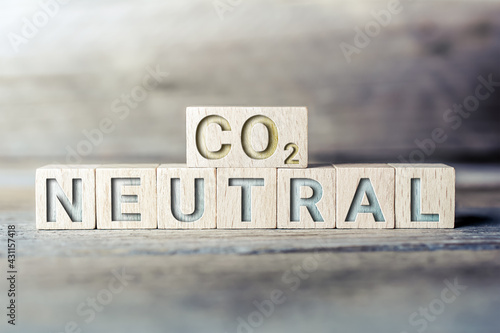 CO2 Neutral Written On Wooden Blocks On A Board -Reduce Global Warming Concept