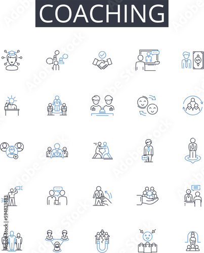 Coaching line icons collection. Mentoring, Guiding, Training, Instructing, Tutoring, Advising, Teaching vector and linear illustration. Directing,Counseling,Educating outline signs set