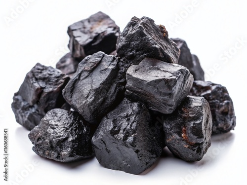 Coal Lumps, Black Coal, White Background, High Definition, Realistic