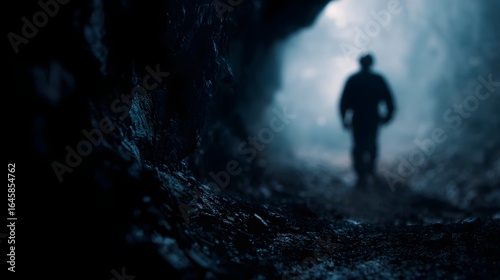 Coal miner walking through a dark underground tunnel