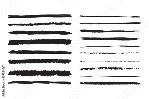Coal pencils grunge strokes set. Brush Chalk line marker texture. Straight lines