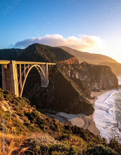 Coastal bridge at sunset