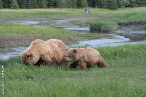 Coastal Brown Bear (Ursus arctos) family in Lake Clark NP, Alaska