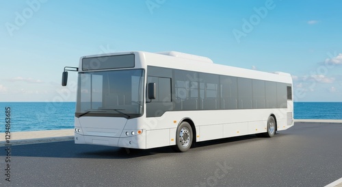 Coastal Bus Transportation: A White Coach by the Sea