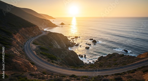Coastal Highway Sunset: Serene Ocean Drive at Golden Hour