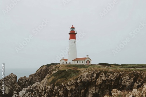 Coastal Lighthouse, Foggy Day, Ocean View, Cliffside, Navigation