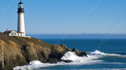 Coastal Lighthouse Stands Tall Against Ocean Waves