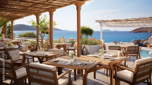 Coastal Restaurant Terrace Overlooking the Sea with Tables and Chairs