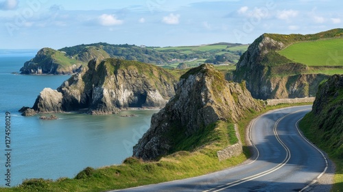 Coastal road journey scenic views of rock outcrops and breathtaking sea background wallpaper