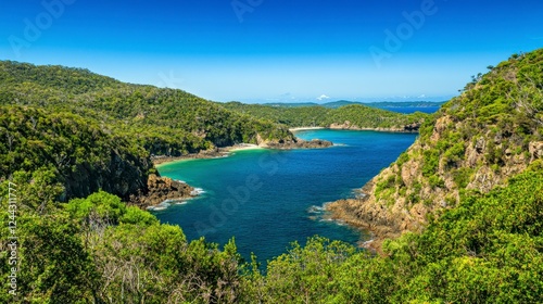 Coastal Serenity: A Picturesque Bay Embraced by Lush Foliage