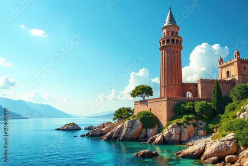 Coastal Tower and Fortress on a Sunny Day with Crystal Clear Waters