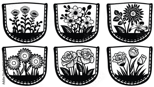 coat of arms Set of black and white floral shields. Vector illustration ready for vinyl cutting.