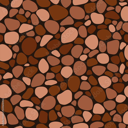 Cobblestone mosaic seamless pattern, brown stone texture. Vector abstract repeat background