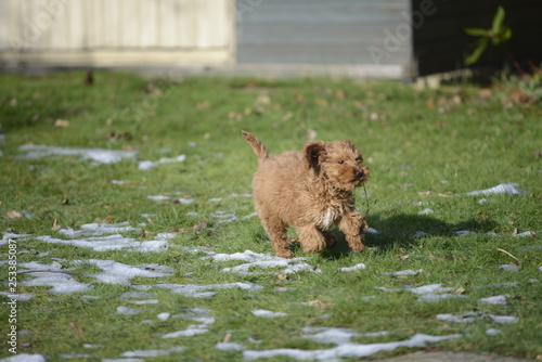 cockapoo playing in snow