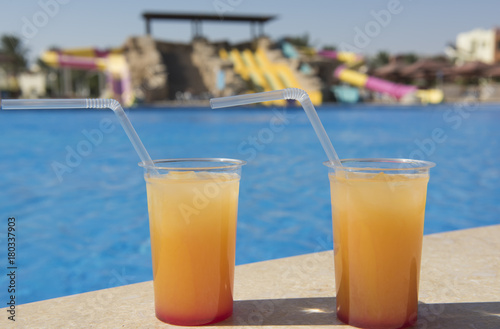 Cocktail drinks by a swimming pool