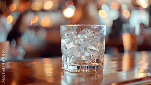 Cocktail glass in a bar with blurry people in the background in a nice atmosphere. Gives a friendly feeling. It can be used in bar advertising or promotion to attract customers who want a relaxed.