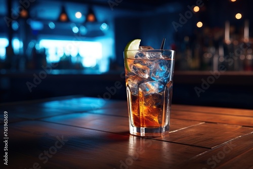 Cocktail on a wooden tabletop. Beautiful background with bokeh.