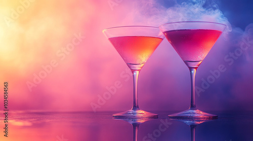cocktail sits atop a beautifully textured surface, enveloped in wisps of smoke. The interplay of colors and light creates an enchanting atmosphere, inviting indulgence and mystery
