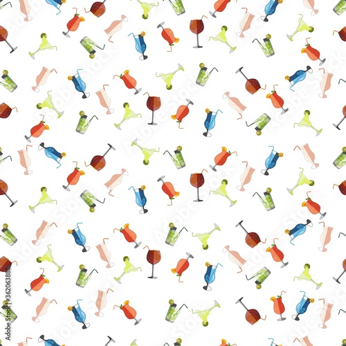cocktails pattern, mojito, pina-colada, blue lagoon, mai tai, aperol Spritz, margarita, vector illustration
