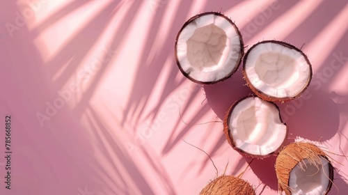 Coconut fruit top view on the pastel background