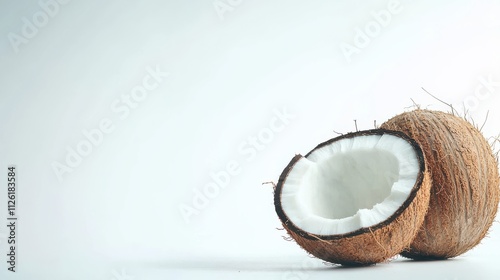 Coconut halved for culinary uses kitchen counter food photography minimalist style close-up