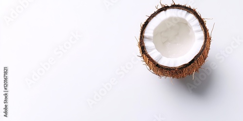 Coconut isolated on a white background, featuring ample copy space for your text. This top view and flat lay of coconut highlights its unique texture and visual appeal.