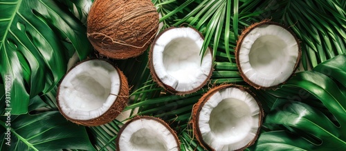 Coconut leaves separated on a white background. with copy space image. Place for adding text or design