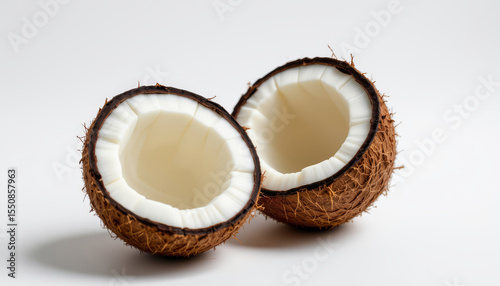 Coconut with milk splashes isolated on white background