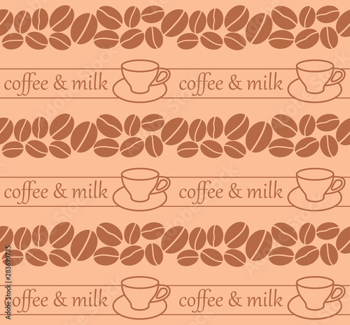 coffee and milk - vector beige seamless pattern with coffee beans and cups