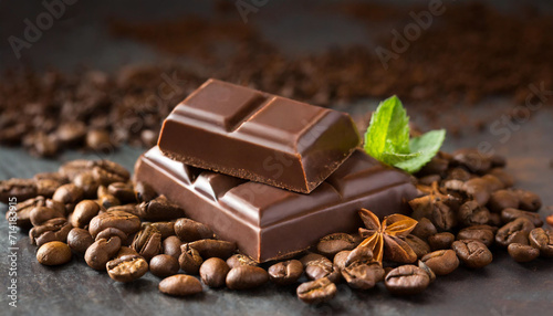 Coffee beans and a chocolate bar with.
