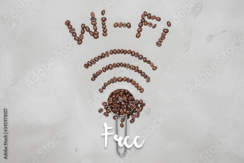 coffee beans lined with fonts wi-fi on a white background, coffee beans fonts wi-fi