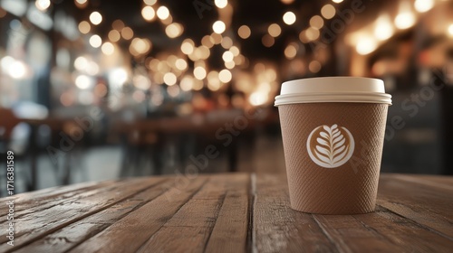Coffee cup on wooden table cafe background