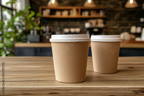 Coffee cup on wooden table in a coffee shop, mock-up
