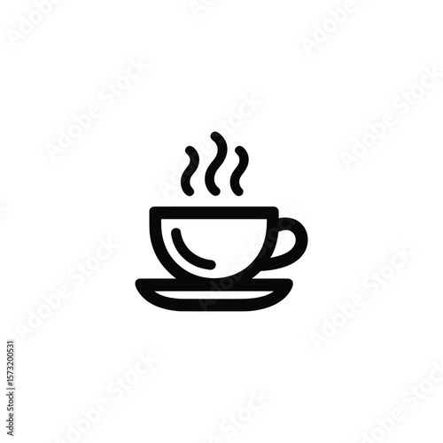 Coffee Cup Outline with Steam Isolated on White Background Simple Line Icon